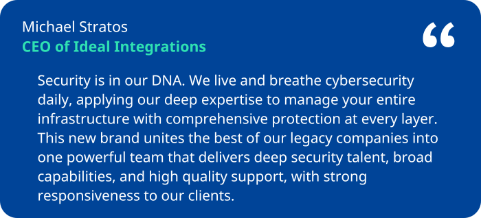 CEO, Michael Stratos shared that the new brand represents a coordinated, holistic approach to technology management with fully integrated security offerings.